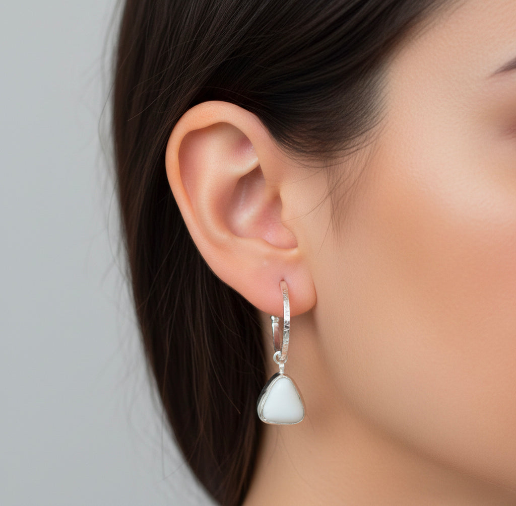 Rockpool Textured Hoop with Milk Sea Glass Drop